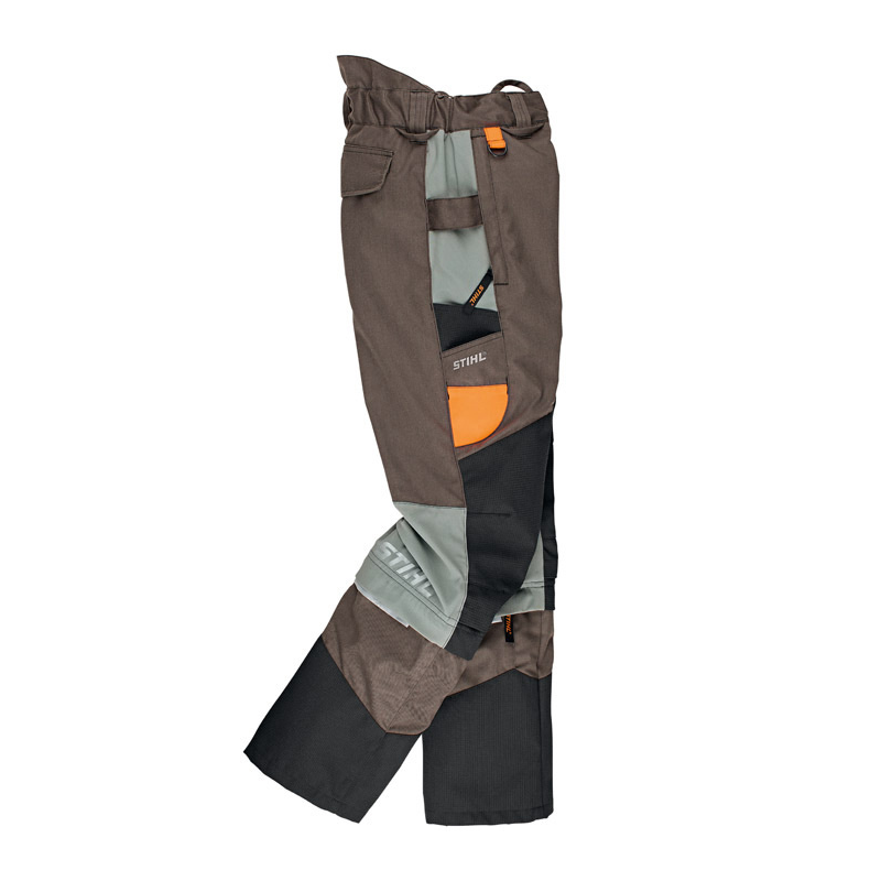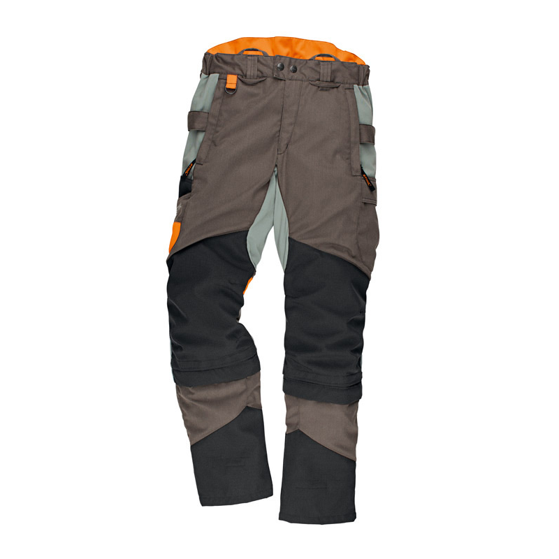 Strechmateriale sørger for optimal bevegelsesfrihet. Vanntett rundt knær og sømmer. Ytterstoff med utvasket utseende. Lange glidelåser for lufting bak på bena og nyrebeskyttelse. Bena kan tas av med glidelås til ned til 3/4-bukse. Farge torv. Størrelse XS-XXL.