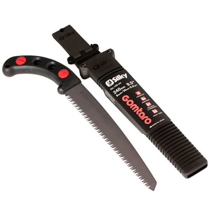 Sagen har et bekvemt gummihåndtak som ligger bra i hånden og absorberer vibrasjoner. Hælen på håndtaket gjør at sagen sitter sikkert igjen i hylsteret. Et slitesterkt polypropylenhylster medfølger og kan festet i ditt belte eller med en benreim på både høyre og venstre side.