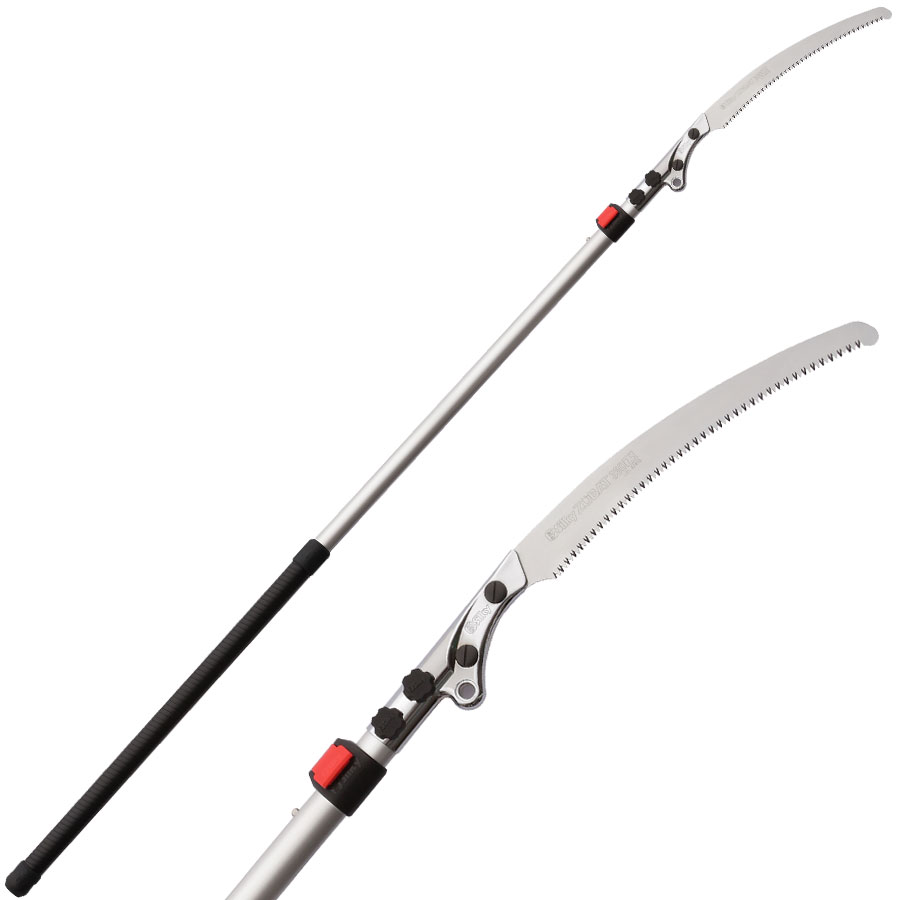 Låsning med plastspennen og trykknapper. Sammenlagt lengde er 2,0 meter, og maxlengde er 3,3 meter. Leveres komplett med bladbeskytter i hardplast.