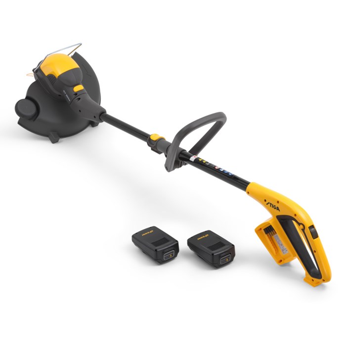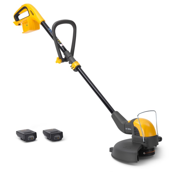 GT 300e Kit er en batteridrevet gresstrimmer drevet av 2x 20 V ePower batterier. Gresstrimmeren har en kraftig motor, balanserte 2x 20 V 2 Ah batterier og et ergonomisk håndtak med mykt grep. Den har over 30 minutters arbeidstid på en lading. Automatisk mating av nylon tråder gir pålitelig og uavbrutt trimming. Den har et justerbart løkkehåndtak, justerbart teleskopskaft og du kan enkelt med kun et trykk bytte mellom trimming og kantmodus. 90° roterende kantfunksjon og et 45° roterende trimmerhode gir et flott og presist kutt rundt planter og nær veggen. De to 20 V ePower batteriene lades enkelt med STIGAs nye ladesystem. Det medfølgende oppbevaringssystemet gjør det mulig å henge gressklipperen på veggen for oppbevaring og lading.