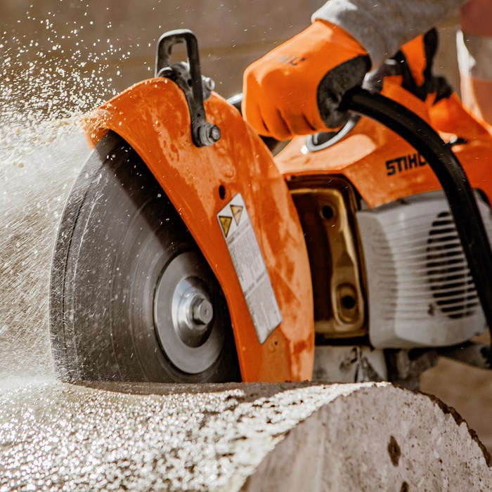 Via vanntilkobling ledes vannet til dyser på kappeskivens vernedeksel og støv som dannes under arbeidet bindes effektivt. Arbeidsmiljøet forbedres betraktelig ved at man forhindrer farlig svevestøv i luften, både for deg selv og dine arbeidskamerater.
