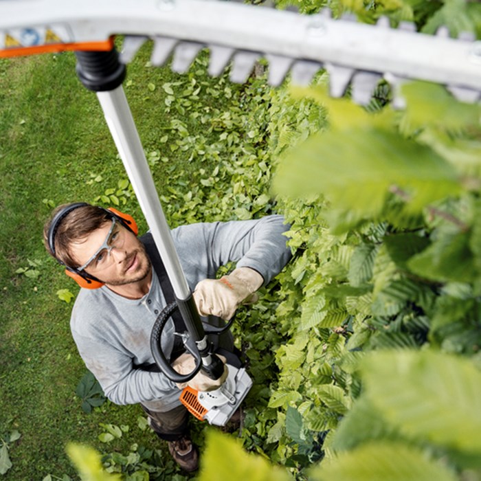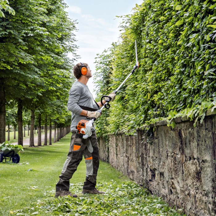 En praktisk bærereim følger med som standard til STIHLs langskaftede hekksakser. Bærereimen avlaster brukeren samtidig som den gir maksimal bevegelsesfrihet. Lengden stilles enkelt inn, helt individuelt.