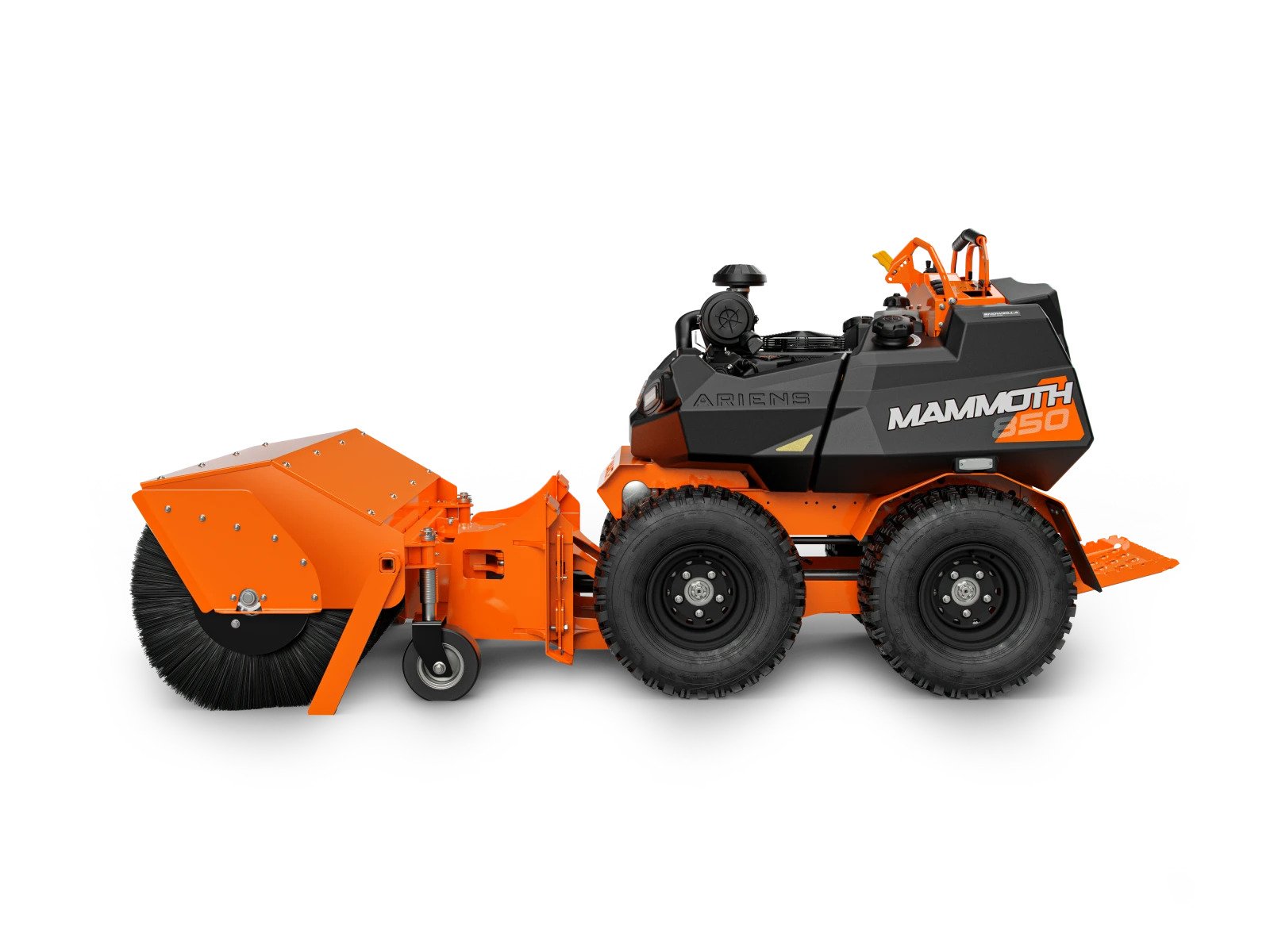 om standard utstyr leveres det med støttehjul med høydejustering for hvor aggressivt du skal børste underlaget. Det medfølger også støtteben som monteres på når børsten skal lagres ved frakopling fra maskin. Når nylon børstene blir slitt så skiftes disse enkelt ut med nye børster.