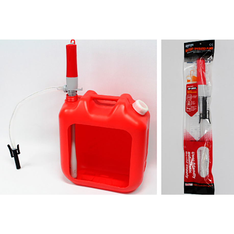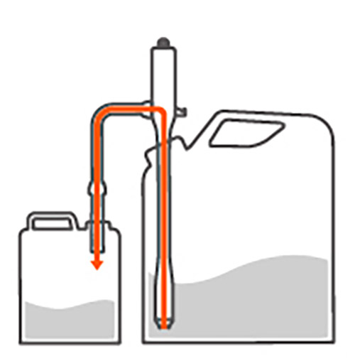 Sugeslangen settes ned i tanken som drivstoffet skal suges opp fra, og enden av påfyllingsslangen plasseres i tanken drivstoffet skal overføres til.