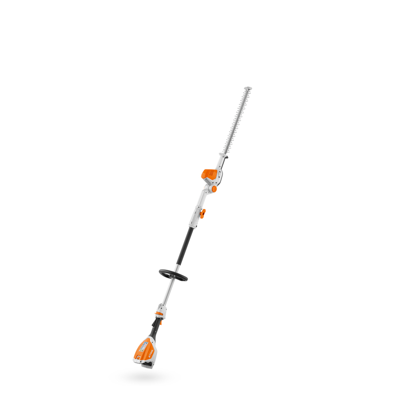 Skaftet på HLA 56 deles enkelt i to med vingeskrue (oransje). Dette forenkler både transport og oppbevaring.
