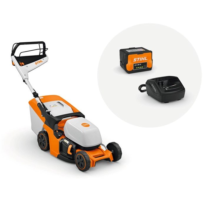 Den batteridrevne gressklipperen STIHL RMA 443 V gir hobbygartnere høy ytelse og svært stillegående drift når de arbeider hjemme i hagen. Det betyr at den også kan brukes på støysensitive steder, for eksempel i boligområder. Hvis du vil komme i gang med gressklippingen i hagen med en gang, men ennå ikke har et batteri fra STIHL AK-systemet, kan det lønne seg å velge den batteridrevne gressklipperen STIHL RMA 443 V i et sett med STIHL AK 30 S-batteri og STIHL AL 101 standardlader.